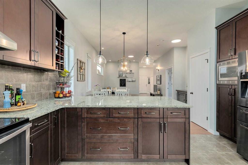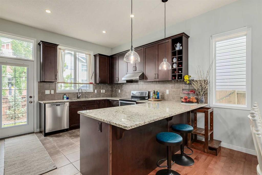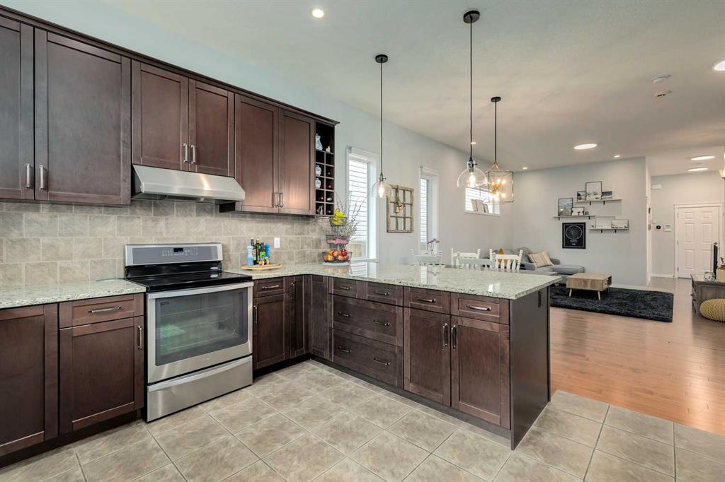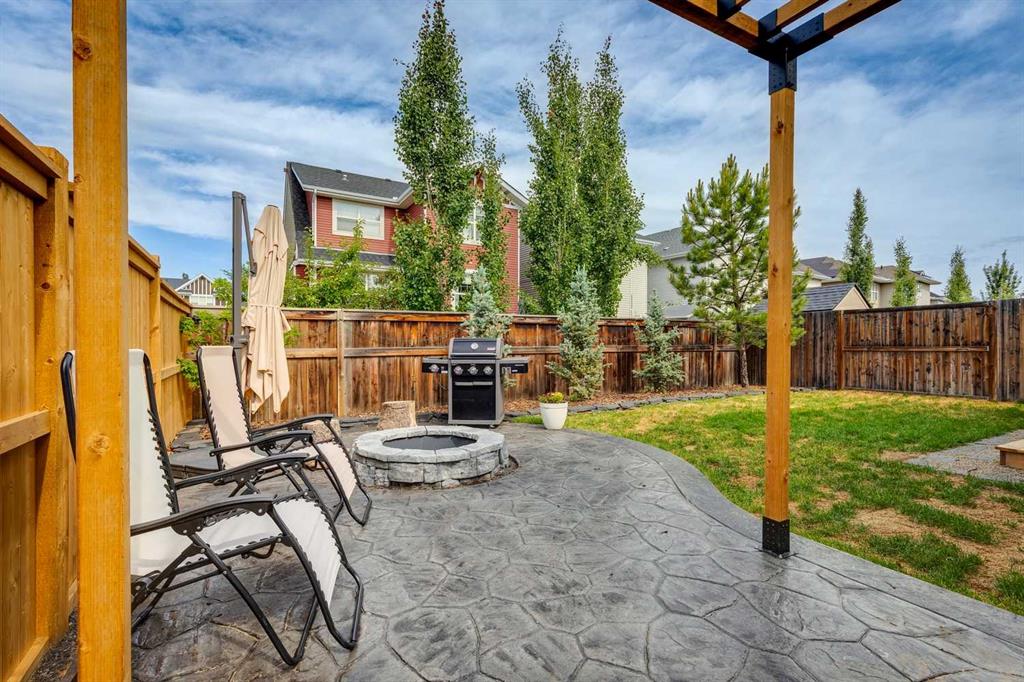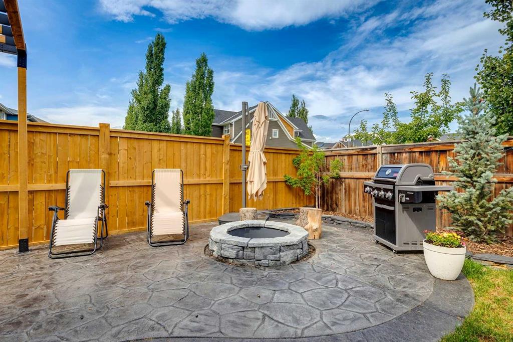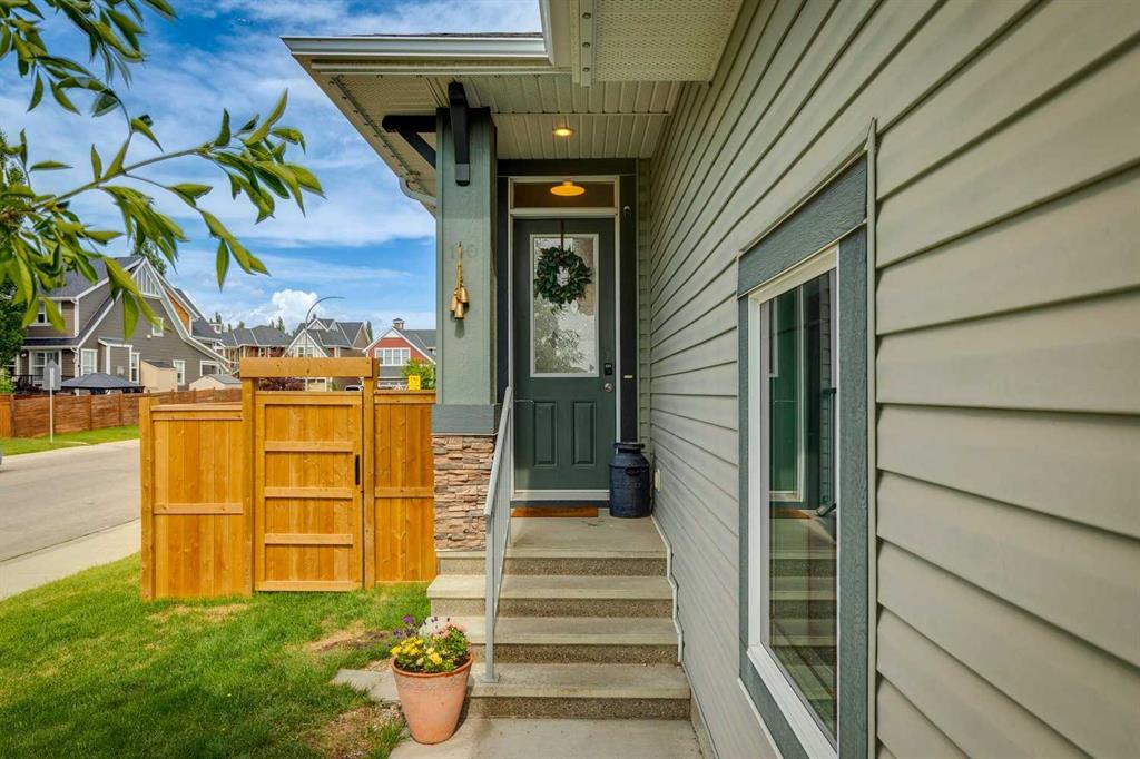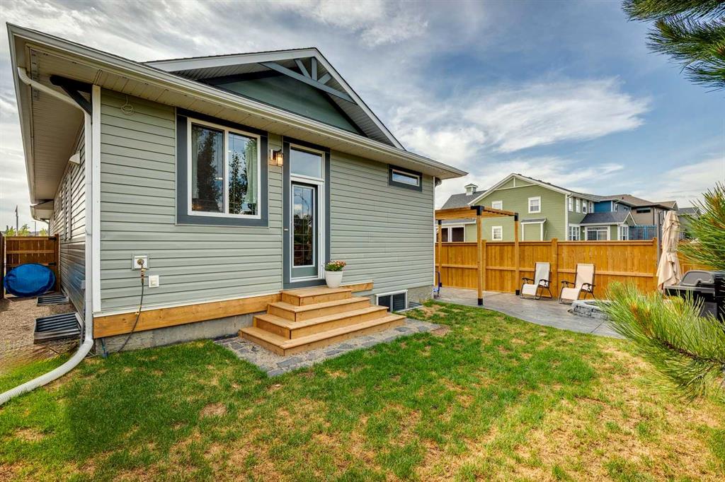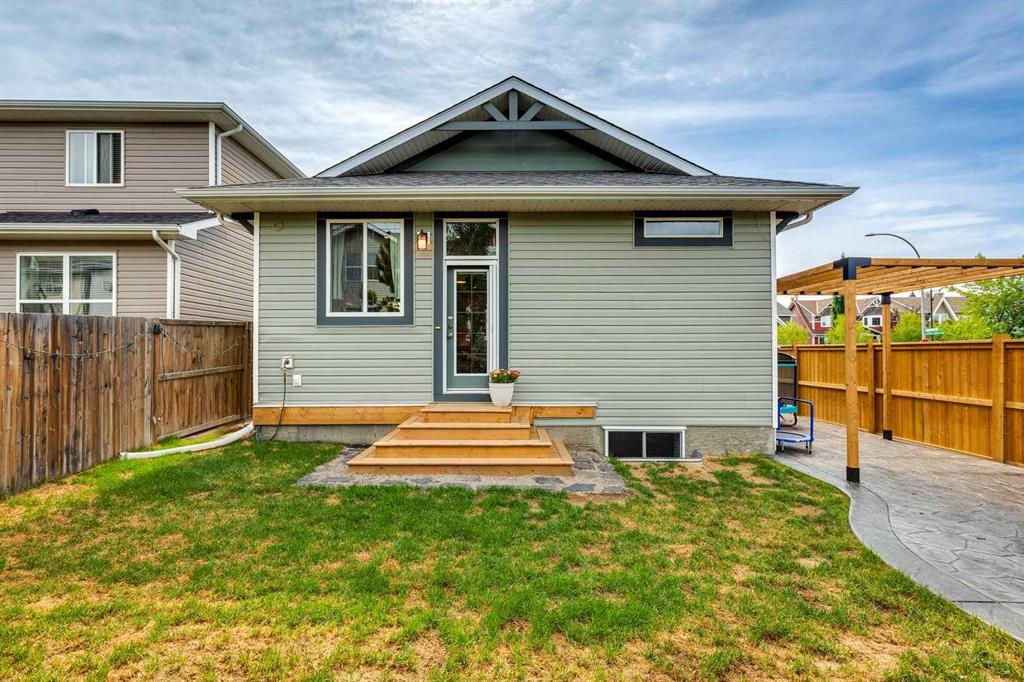A rare opportunity in Auburn Bay – a detached bungalow with a front attached double garage! Perfectly located on a corner lot across from the school and just down the road from the lake. Step inside from your finished garage to an inviting main floor featuring soaring 10-foot ceilings and gleaming hardwood floors. The spacious foyer overlooks the open staircase to the basement and offers a sightline straight through the living area to the backyard. Just off the foyer is a convenient combo mudroom and laundry room. The bright living room provides ample space for seating and flows seamlessly into the formal dining area. Your kitchen is designed for both style and function, featuring a peninsula layout with plenty of counter space, ample cabinetry, and a large walk-in pantry for all your storage needs. The primary retreat easily accommodates a king-sized bed and offers a massive walkthrough ensuite with a private toilet room and a walk-in closet big enough to be its own room. The main floor is completed by a full 4-piece guest bathroom. Conveniently off the kitchen at the back of the house is easy access to your backyard oasis, complete with a custom stamped concrete patio, fireplace, pergola, new fencing, and plenty of yard space to enjoy the outdoors. Downstairs, the fully developed basement offers a large family room with fireplace, three generous bedrooms with bright, big windows, and another 4-piece bath. Additional highlights include a high-efficiency furnace, central air conditioning, water softener system, and under-counter reverse osmosis system. Bungalows like this in Auburn Bay do not come up often. Book your showing today and enjoy single-level living just steps from the lake!