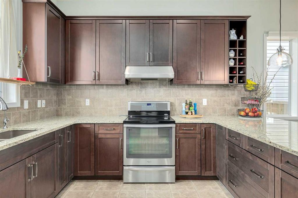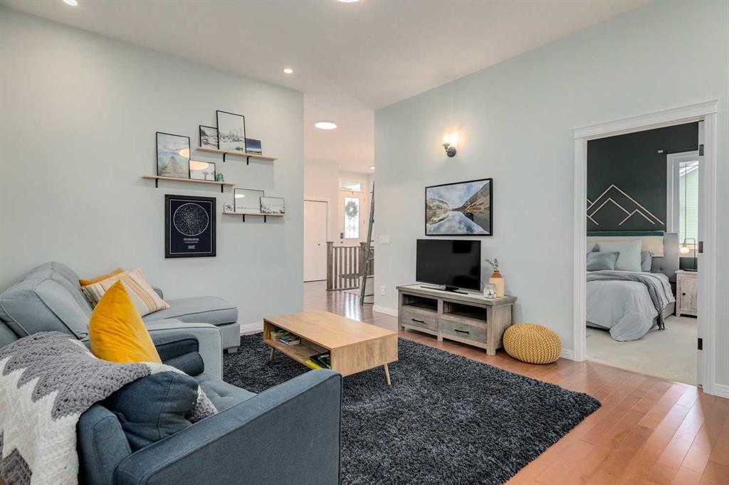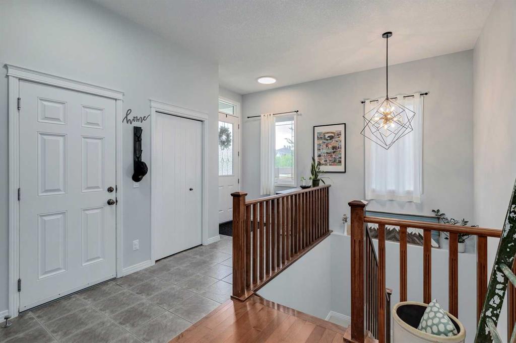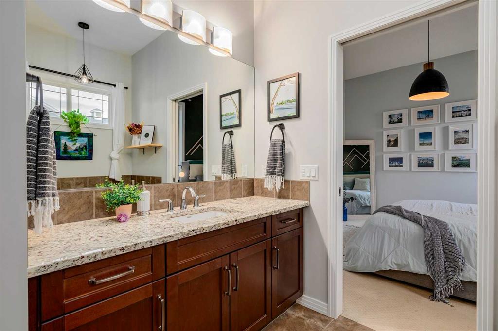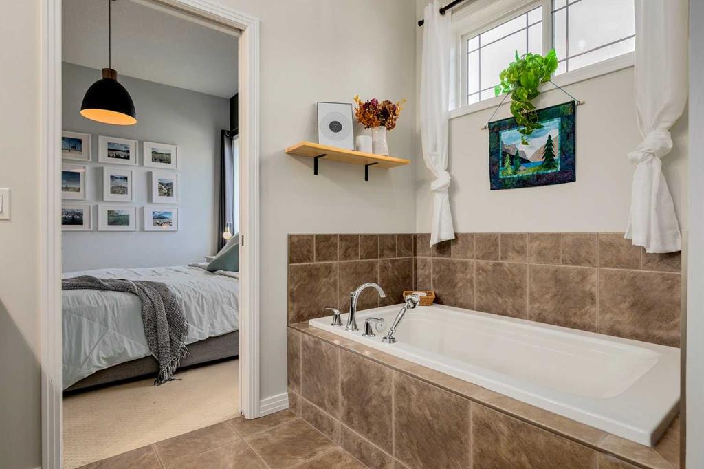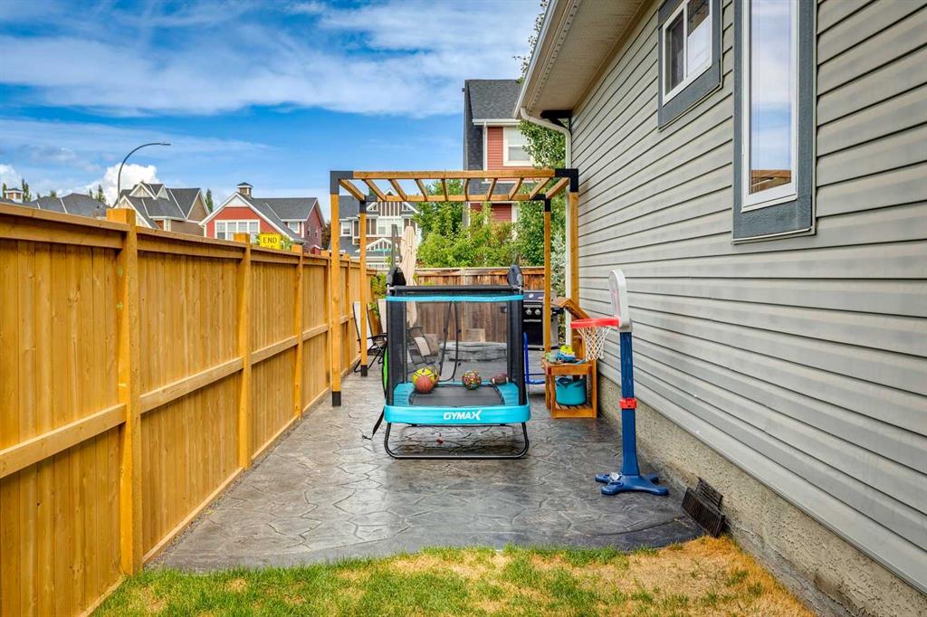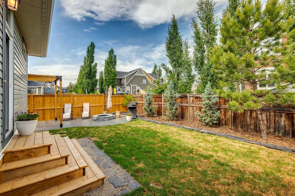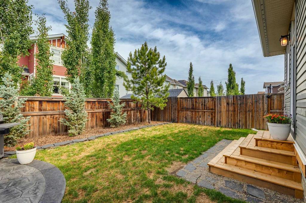 A rare opportunity in Auburn Bay – a detached bungalow with a front attached double garage! Perfectly located on a corner lot across from the school and just down the road from the lake. Step inside from your finished garage to an inviting main floor featuring soaring 10-foot ceilings and gleaming hardwood floors. The spacious foyer overlooks the open staircase to the basement and offers a sightline straight through the living area to the backyard. Just off the foyer is a convenient combo mudroom and laundry room. The bright living room provides ample space for seating and flows seamlessly into the formal dining area. Your kitchen is designed for both style and function, featuring a peninsula layout with plenty of counter space, ample cabinetry, and a large walk-in pantry for all your storage needs. The primary retreat easily accommodates a king-sized bed and offers a massive walkthrough ensuite with a private toilet room and a walk-in closet big enough to be its own room. The main floor is completed by a full 4-piece guest bathroom. Conveniently off the kitchen at the back of the house is easy access to your backyard oasis, complete with a custom stamped concrete patio, fireplace, pergola, new fencing, and plenty of yard space to enjoy the outdoors. Downstairs, the fully developed basement offers a large family room with fireplace, three generous bedrooms with bright, big windows, and another 4-piece bath. Additional highlights include a high-efficiency furnace, central air conditioning, water softener system, and under-counter reverse osmosis system. Bungalows like this in Auburn Bay do not come up often. Book your showing today and enjoy single-level living just steps from the lake!