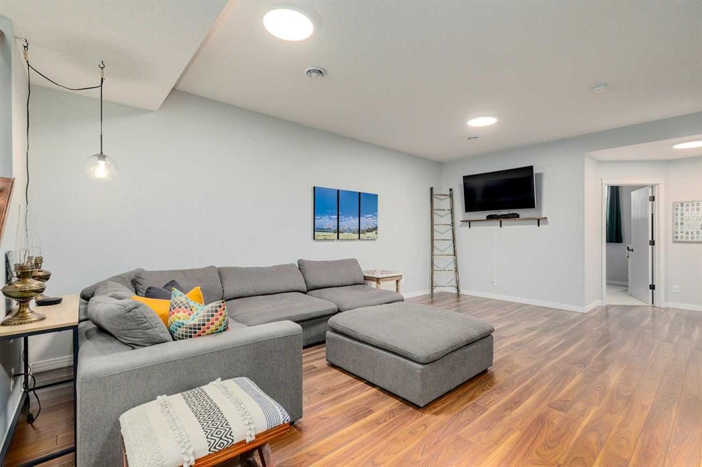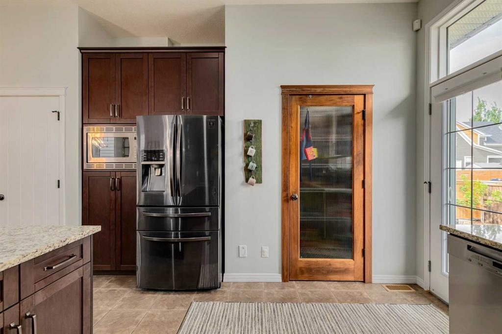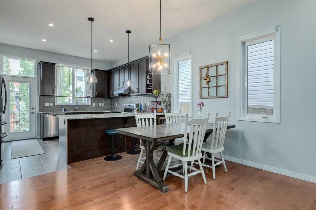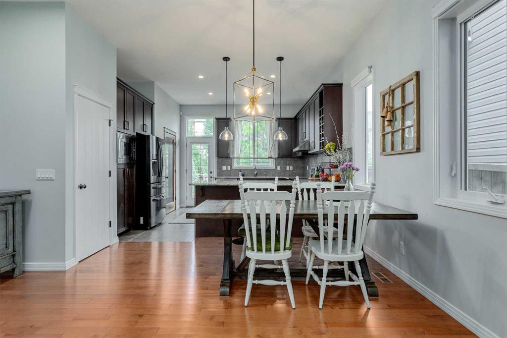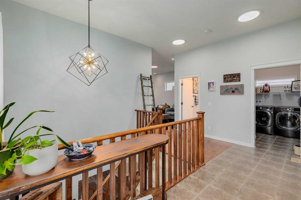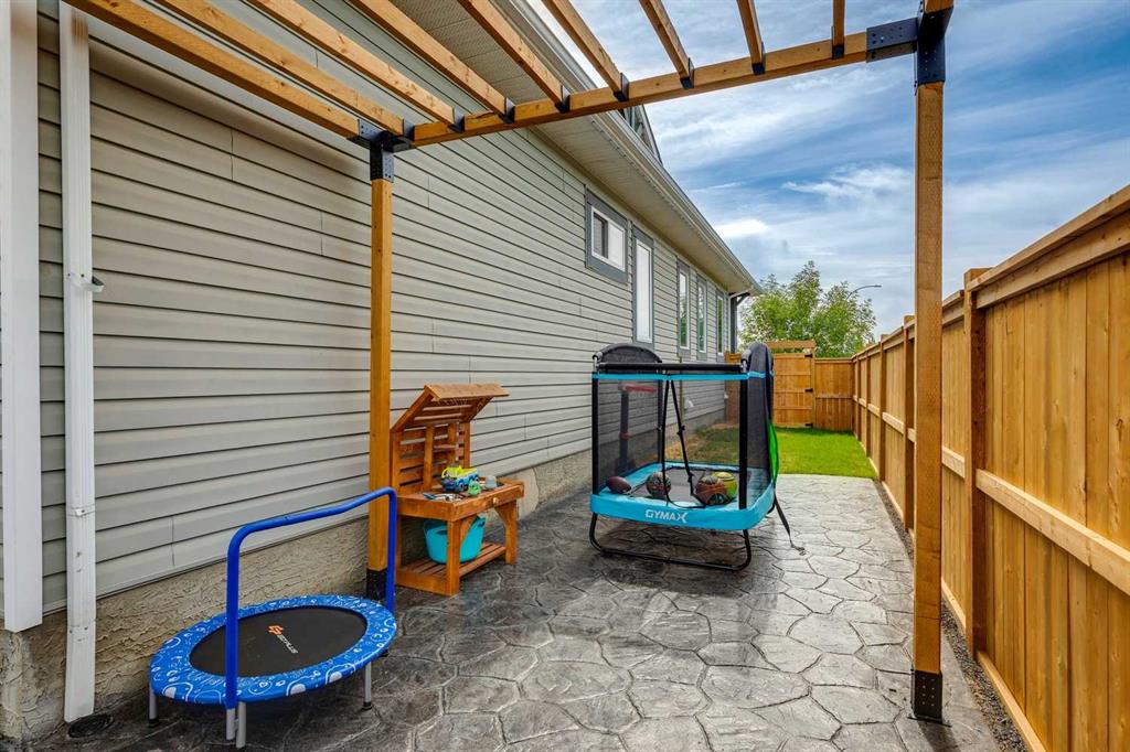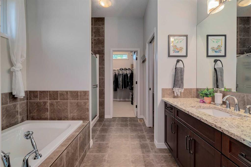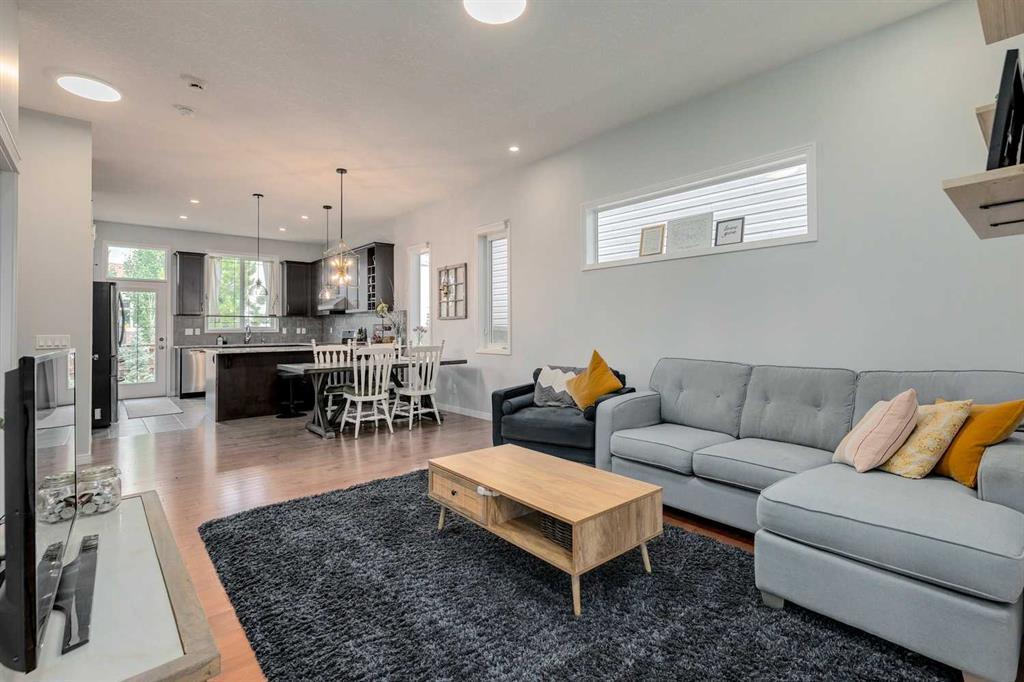 A rare opportunity in Auburn Bay – a detached bungalow with a front attached double garage! Perfectly located on a corner lot across from the school and just down the road from the lake. Step inside from your finished garage to an inviting main floor featuring soaring 10-foot ceilings and gleaming hardwood floors. The spacious foyer overlooks the open staircase to the basement and offers a sightline straight through the living area to the backyard. Just off the foyer is a convenient combo mudroom and laundry room. The bright living room provides ample space for seating and flows seamlessly into the formal dining area. Your kitchen is designed for both style and function, featuring a peninsula layout with plenty of counter space, ample cabinetry, and a large walk-in pantry for all your storage needs. The primary retreat easily accommodates a king-sized bed and offers a massive walkthrough ensuite with a private toilet room and a walk-in closet big enough to be its own room. The main floor is completed by a full 4-piece guest bathroom. Conveniently off the kitchen at the back of the house is easy access to your backyard oasis, complete with a custom stamped concrete patio, fireplace, pergola, new fencing, and plenty of yard space to enjoy the outdoors. Downstairs, the fully developed basement offers a large family room with fireplace, three generous bedrooms with bright, big windows, and another 4-piece bath. Additional highlights include a high-efficiency furnace, central air conditioning, water softener system, and under-counter reverse osmosis system. Bungalows like this in Auburn Bay do not come up often. Book your showing today and enjoy single-level living just steps from the lake!