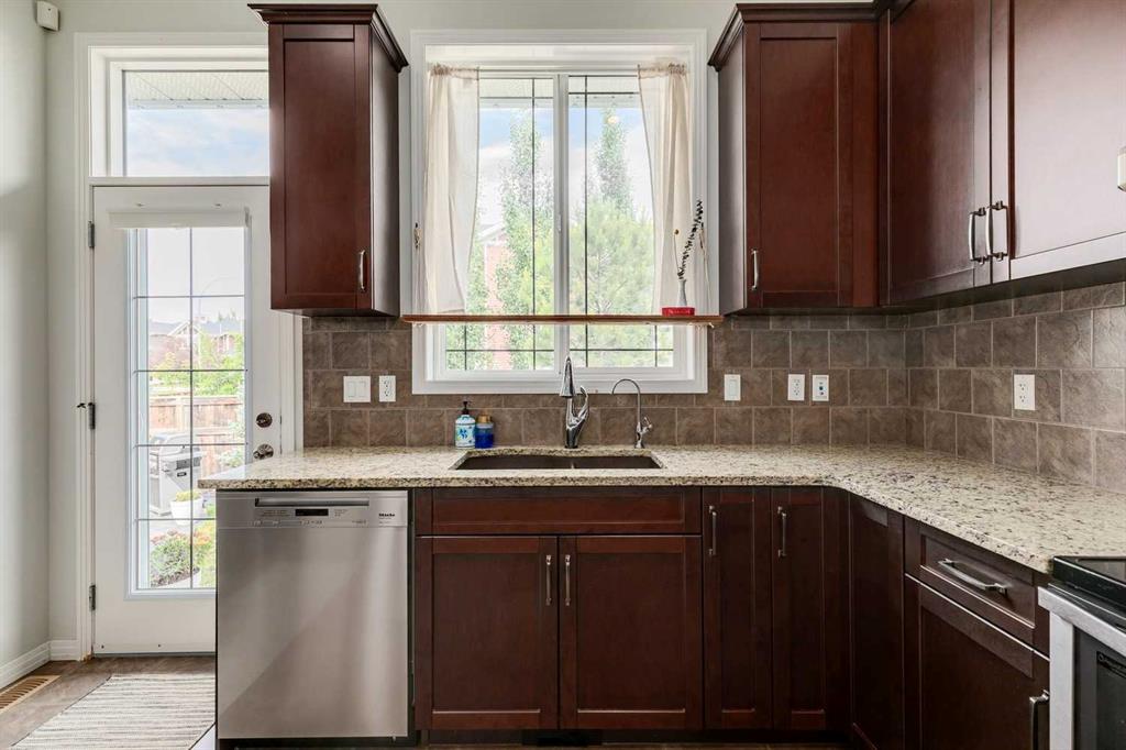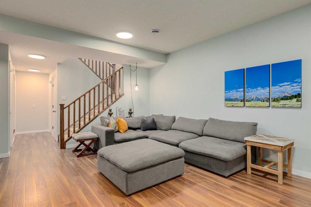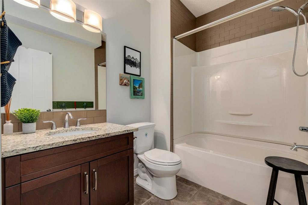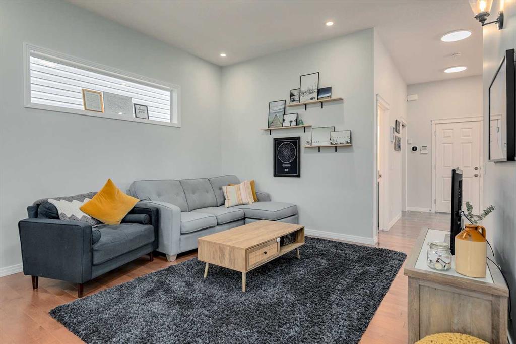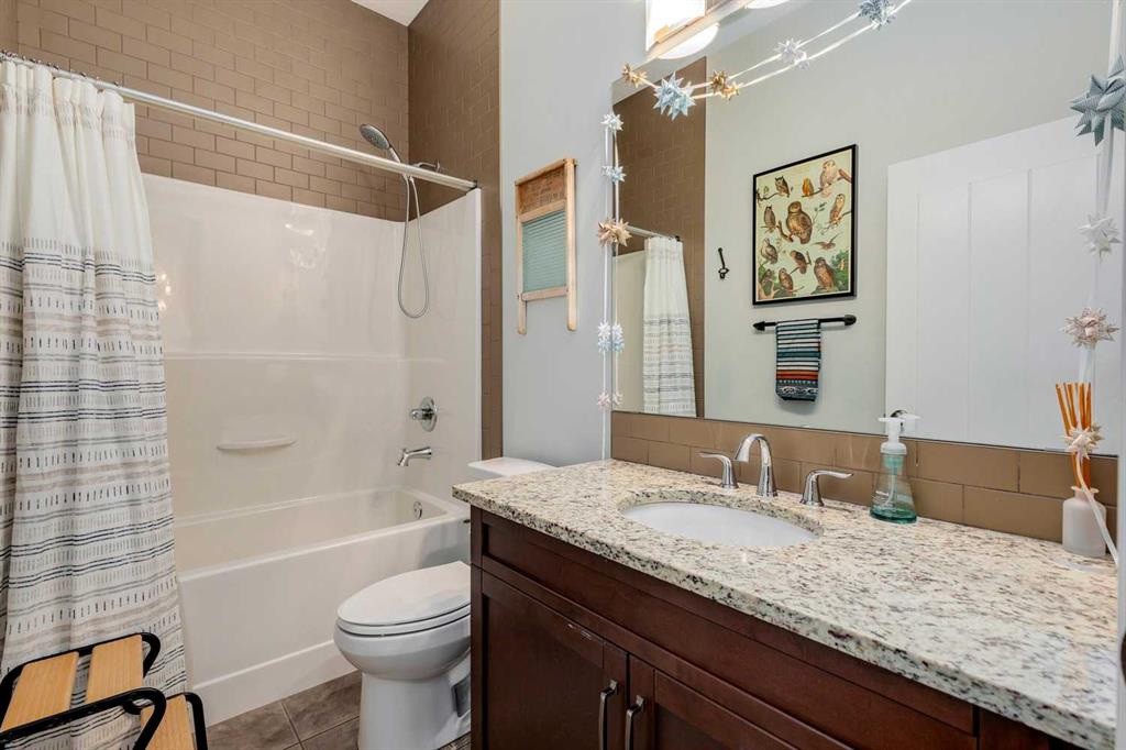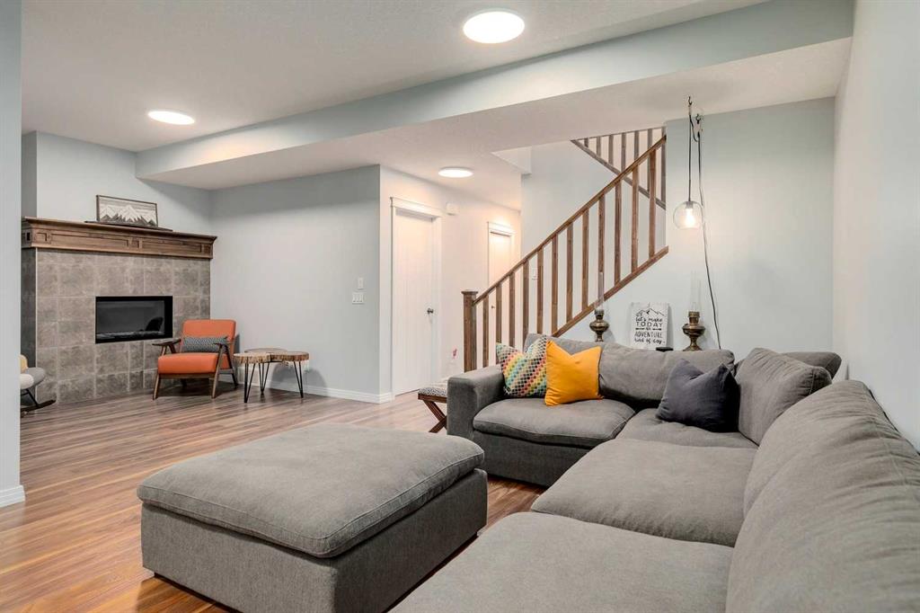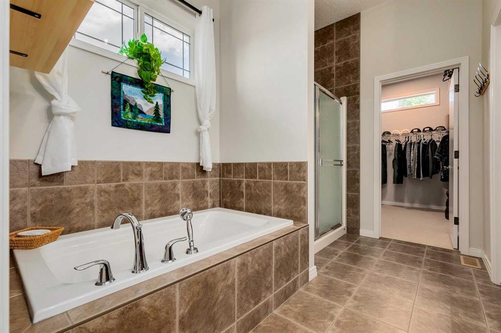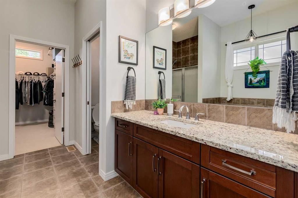 A rare opportunity in Auburn Bay – a detached bungalow with a front attached double garage! Perfectly located on a corner lot across from the school and just down the road from the lake. Step inside from your finished garage to an inviting main floor featuring soaring 10-foot ceilings and gleaming hardwood floors. The spacious foyer overlooks the open staircase to the basement and offers a sightline straight through the living area to the backyard. Just off the foyer is a convenient combo mudroom and laundry room. The bright living room provides ample space for seating and flows seamlessly into the formal dining area. Your kitchen is designed for both style and function, featuring a peninsula layout with plenty of counter space, ample cabinetry, and a large walk-in pantry for all your storage needs. The primary retreat easily accommodates a king-sized bed and offers a massive walkthrough ensuite with a private toilet room and a walk-in closet big enough to be its own room. The main floor is completed by a full 4-piece guest bathroom. Conveniently off the kitchen at the back of the house is easy access to your backyard oasis, complete with a custom stamped concrete patio, fireplace, pergola, new fencing, and plenty of yard space to enjoy the outdoors. Downstairs, the fully developed basement offers a large family room with fireplace, three generous bedrooms with bright, big windows, and another 4-piece bath. Additional highlights include a high-efficiency furnace, central air conditioning, water softener system, and under-counter reverse osmosis system. Bungalows like this in Auburn Bay do not come up often. Book your showing today and enjoy single-level living just steps from the lake!