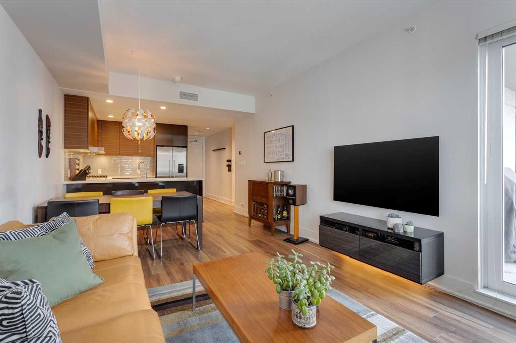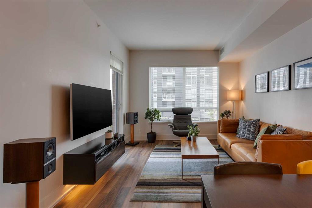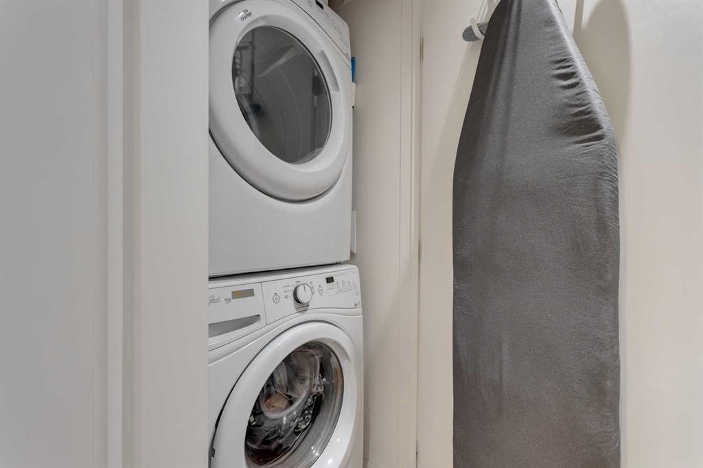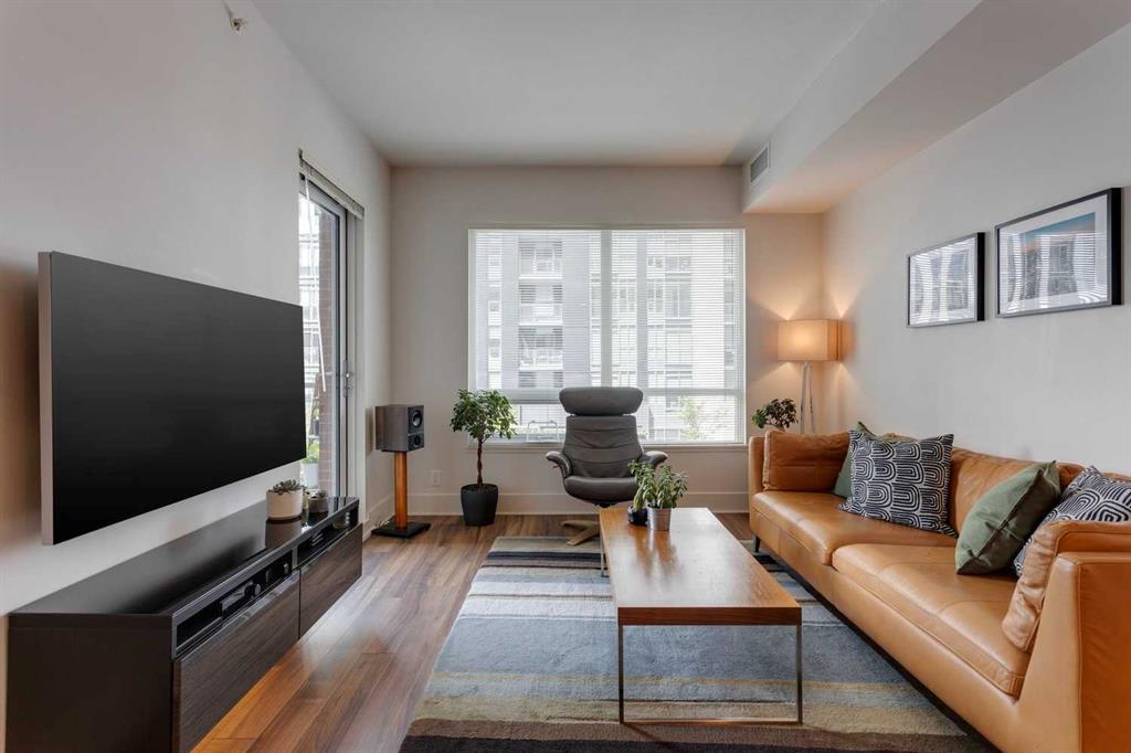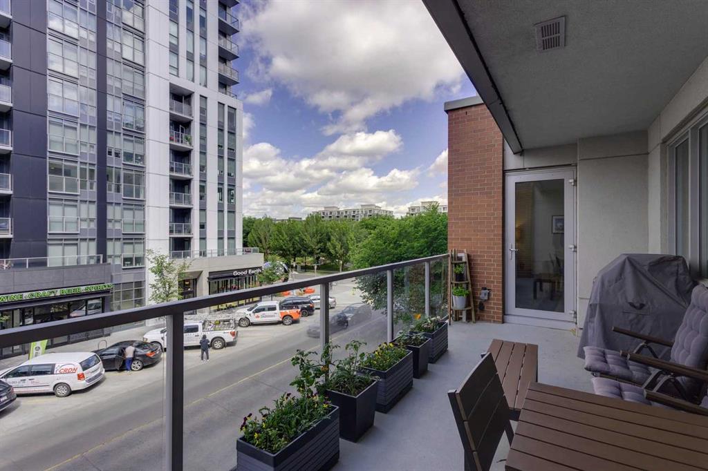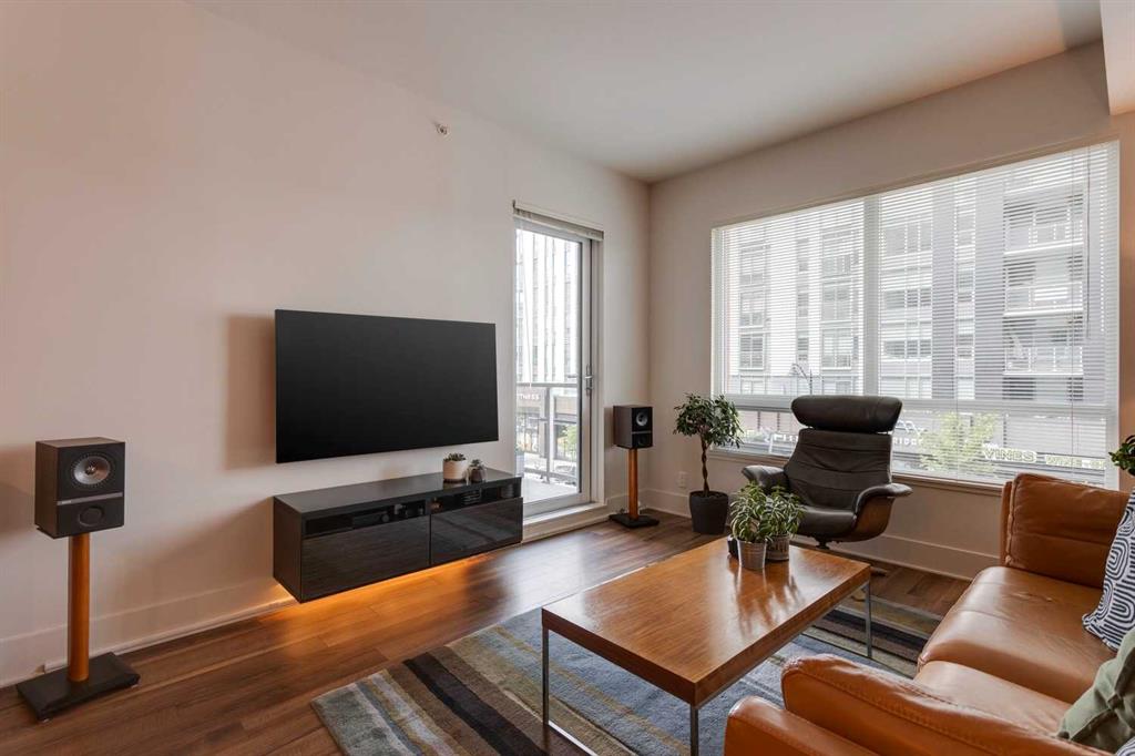 Welcome to Unit 301 in the sought-after Bridgeland Crossings II—where urban living meets serene retreat. This stunning 2-bedroom, 2-bathroom condo offers one of the largest west-facing balconies in the entire building, perfect for relaxing evenings, container gardening, or entertaining under the open sky. Inside, the bright and airy living space features an open-concept layout anchored by a spacious kitchen with a built-in gas cooktop, stainless steel appliances, and an oversized peninsula offering ample prep space and additional storage. A formal dining area flows effortlessly into the sun-soaked living room, framed by large windows and direct access to your expansive outdoor patio with a natural gas hookup. The king-sized primary suite includes a large closet and private 3-piece ensuite, while the second bedroom is ideal for guests or a home office. A full 4-piece guest bath and convenient in-suite laundry complete the thoughtful layout. This unit stands out with a rare oversized end parking stall (check the photos!) and a private storage unit on the same floor—a true convenience in condo living. Residents enjoy an unmatched list of amenities: a fitness centre in each building, yoga room, a huge landscaped courtyard with garden plots, communal BBQs, putting green, and multiple gathering areas. Other perks include guest suites, party lounge with theatre, bike storage and repair room, and a dog wash station. Just steps to the C-Train, local shops, restaurants, river pathways, and beautiful Bridgeland parks, this is your opportunity to live “Moments Away. A World Apart.” Don’t miss your chance to own in one of the most desirable buildings in this highly acclaimed community!