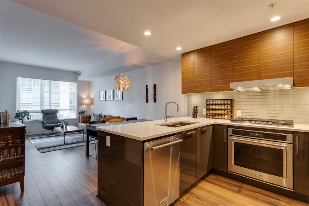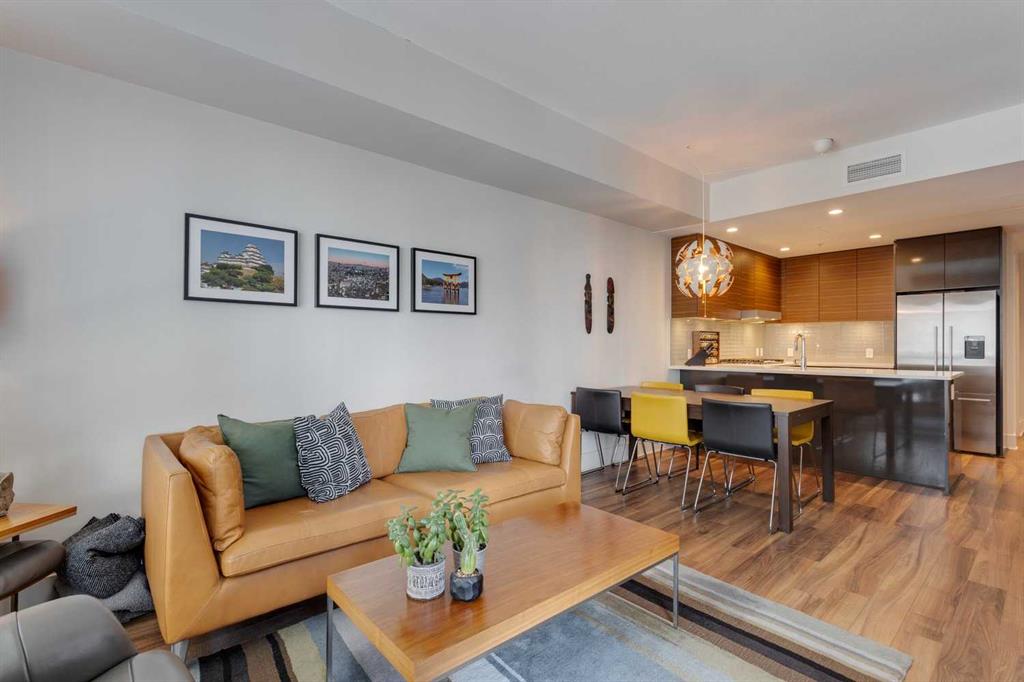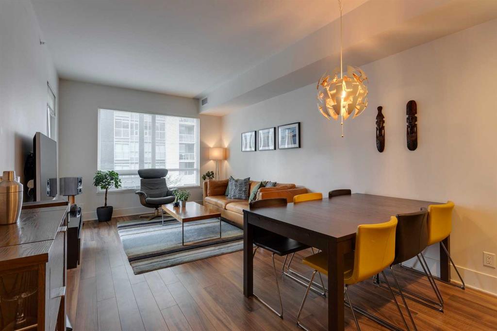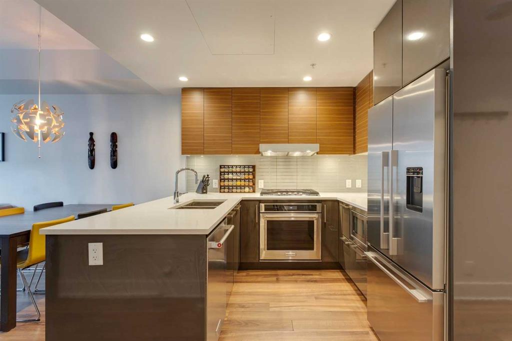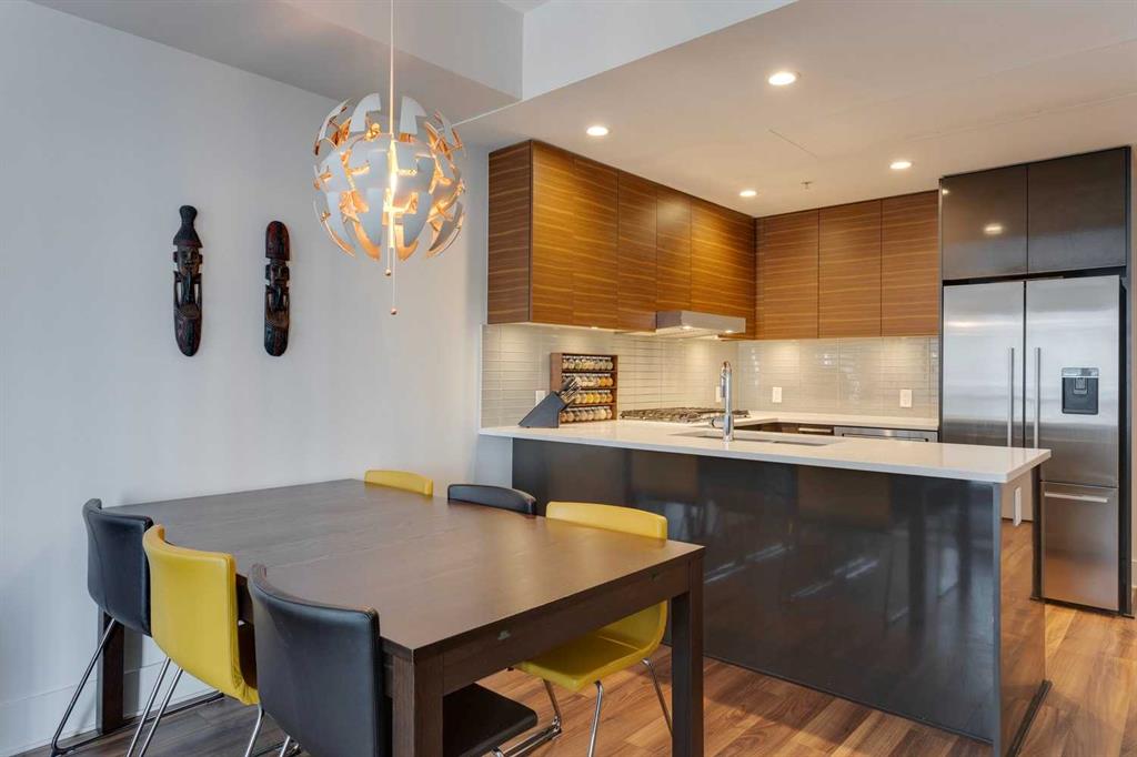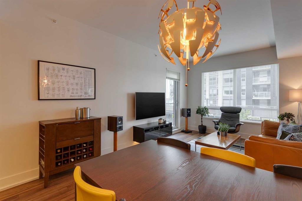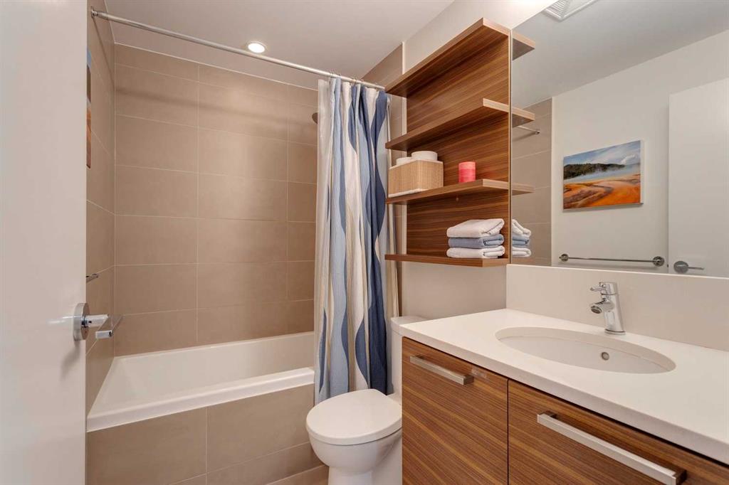 Welcome to Unit 301 in the sought-after Bridgeland Crossings II—where urban living meets serene retreat. This stunning 2-bedroom, 2-bathroom condo offers one of the largest west-facing balconies in the entire building, perfect for relaxing evenings, container gardening, or entertaining under the open sky. Inside, the bright and airy living space features an open-concept layout anchored by a spacious kitchen with a built-in gas cooktop, stainless steel appliances, and an oversized peninsula offering ample prep space and additional storage. A formal dining area flows effortlessly into the sun-soaked living room, framed by large windows and direct access to your expansive outdoor patio with a natural gas hookup. The king-sized primary suite includes a large closet and private 3-piece ensuite, while the second bedroom is ideal for guests or a home office. A full 4-piece guest bath and convenient in-suite laundry complete the thoughtful layout. This unit stands out with a rare oversized end parking stall (check the photos!) and a private storage unit on the same floor—a true convenience in condo living. Residents enjoy an unmatched list of amenities: a fitness centre in each building, yoga room, a huge landscaped courtyard with garden plots, communal BBQs, putting green, and multiple gathering areas. Other perks include guest suites, party lounge with theatre, bike storage and repair room, and a dog wash station. Just steps to the C-Train, local shops, restaurants, river pathways, and beautiful Bridgeland parks, this is your opportunity to live “Moments Away. A World Apart.” Don’t miss your chance to own in one of the most desirable buildings in this highly acclaimed community!