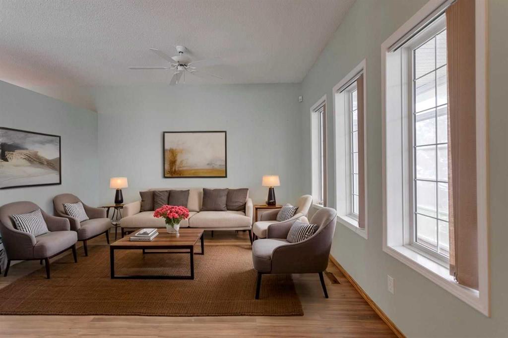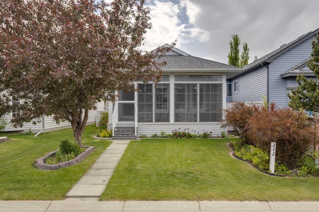 Welcome to 242 Covington Close NE—a charming, well-kept bungalow tucked away on a quiet street in the heart of Coventry Hills. From the moment you arrive, the curb appeal stands out, highlighted by a fully enclosed front sunroom—perfect for enjoying your morning coffee or relaxing in the evening. Inside, the bright and airy main floor features soaring ceilings and a spacious living room bathed in natural light from large front windows. A dedicated dining area connects to a thoughtfully designed kitchen with plenty of cabinetry to keep everything organized. The rear of the home offers a large primary bedroom with a walk-in closet featuring custom organizers, two additional bedrooms, and a full 4-piece bathroom. Downstairs, a nearly 400 sq ft finished rec room provides the ideal space for a home theatre, games room, or play area. The other half of the basement is undeveloped and awaits your personal vision. The backyard is low-maintenance with a large patio area and mature flower beds—perfect for relaxing or entertaining. A paved back lane leads to your double detached garage, offering secure parking and convenience year-round. Move-in ready and available for quick possession. Don’t miss this opportunity—book your showing today!