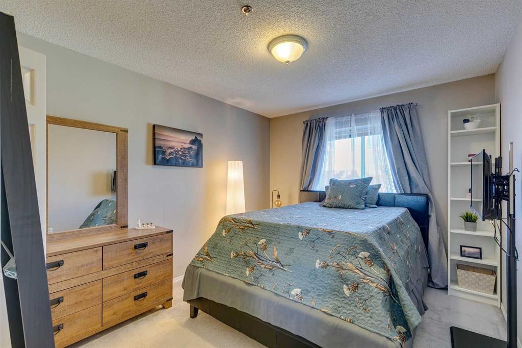 Welcome to Unit 305 at 7 Harvest Gold Manor NE—an exceptional top-floor home that stands out as one of the best in the building - only one direct neighbour! This bright and airy unit is defined by its soaring vaulted ceilings and a stunning wall of windows that fill the open-concept living space with natural light. Step inside to discover a spacious layout featuring a formal dining area and a comfortable living room complete with a cozy gas fireplace. The well-appointed kitchen is semi-open to the main living area, providing the perfect balance of connection and privacy. A dedicated den or home office offers an ideal workspace for those working remotely or needing a quiet retreat. The thoughtfully designed floor plan features two bedrooms located on opposite ends of the unit for maximum privacy. The primary suite includes a walk-through closet leading to a private 3-piece ensuite, while the generous second bedroom is conveniently adjacent to the main 4-piece bath. Additional highlights include in-suite laundry, a dedicated storage room, and a private balcony with a gas line for your BBQ—perfect for relaxing or entertaining. This unit also includes a heated underground parking stall with a full storage cage at the front for added convenience. Ideally situated across the street from the T&T Supermarket, close to transit, shopping, major routes, and the airport, this is a rare opportunity to own one of the most desirable top-floor units in the complex. Don’t miss your chance—book your showing today!