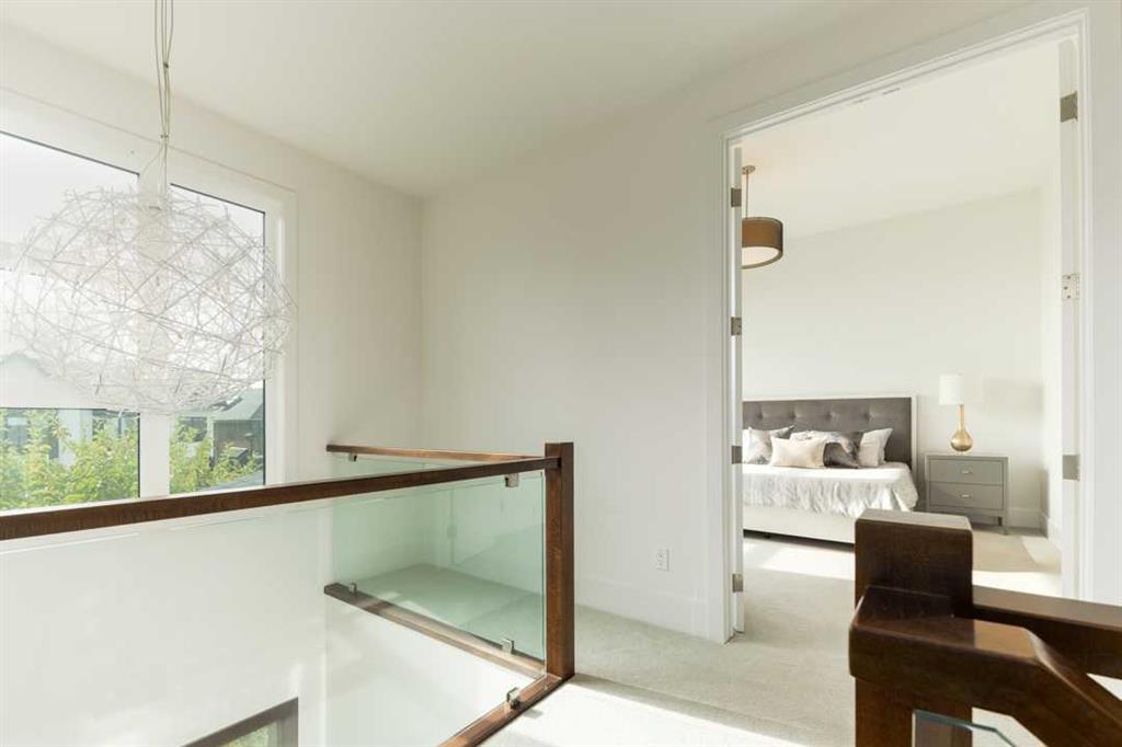 Set on a quiet, tree-lined, pedestrian-friendly street in the heart of Marda Loop, this south-facing detached home blends refined design with everyday comfort — and sits on a mature 33’ lot with no remaining development sites nearby. Built by Maillot Homes, one of Calgary’s most respected builders, the home showcases timeless craftsmanship and understated luxury throughout. Built by Maillot Homes, one of Calgary’s most respected builders, the home showcases timeless craftsmanship and understated luxury throughout. The open main floor is anchored by a stunning walnut kitchen with quartz countertops, Miele and Viking appliances, and a generous quartz island that invites conversation. Natural light pours into the connected dining and family rooms, creating a space that feels both polished and relaxed — perfect for everything from casual mornings to dinner parties with friends. A separate front living room offers flexibility for work or entertaining, while a large mudroom with built-ins keeps daily life organized. Out back, enjoy a north-facing yard with a private deck and a heated, oversized detached garage that provides ample space for vehicles and storage as well as 240V outlet for Level 2 charging. Upstairs, the layout is both practical and beautiful. The primary suite is a true retreat, featuring a soaker tub, steam shower with heated floors, and walk-in closet. Two additional bedrooms, each with their own walk-in closets, share a stylish Jack-and-Jill bathroom with a second tub. A convenient upstairs laundry room completes the level. Downstairs, the lower level delivers versatile living space — featuring a wet bar, theatre with projector screen, and a bonus room that can flex as a gym, office, or fourth bedroom. Custom drapery is included throughout, along with central A/C, in-floor heating, and the signature attention to detail that Maillot Homes is known for. Located just a short walk to the shops, cafes, and restaurants of Marda Loop and Garrison, this home captures the best of inner-city living — sophisticated, comfortable, and perfectly connected.