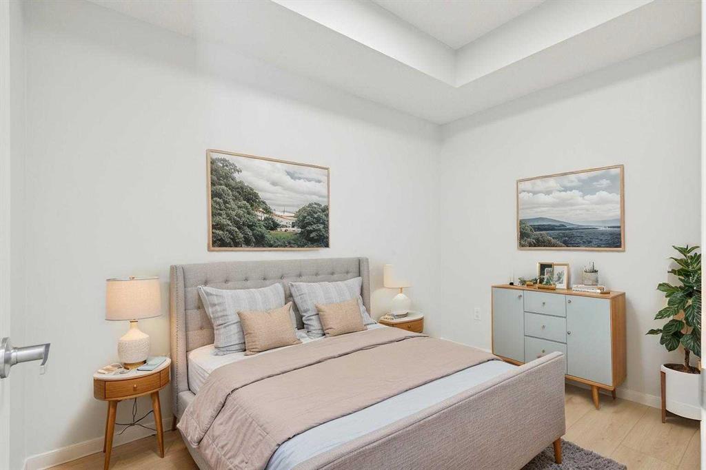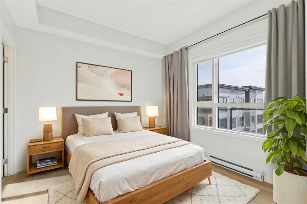 Top floor unit with an oversized south-facing patio, mountain views, and no buildings in front—an extremely rare find in Seton. Overlooking a peaceful rock garden instead of neighbouring buildings, this home enjoys incredible natural sunlight all day and unobstructed views while offering the privacy that many condo buyers are searching for. Welcome to Unit 6408 at Seton Serenity, offering nearly 771 sq ft of thoughtfully designed living space with 2 bedrooms, 2 full bathrooms, underground parking, and in-unit storage. The bright open layout features a spacious living and dining area that flows seamlessly to the large south-facing patio, creating the perfect space to relax, entertain, or enjoy the sun and mountain views. The kitchen stands out from other units in the complex with upgraded finishes including a waterfall quartz island, upgraded hood fan, and modern cabinetry, providing both style and functionality. Unlike many units, this home features durable luxury vinyl plank flooring throughout with no carpet, giving the space a clean, contemporary feel. The primary bedroom includes a private 4-piece ensuite, while the second bedroom and additional full bathroom make the layout ideal for guests, roommates, or a home office. A large laundry room with extra storage space adds convenience rarely found in condo living, and the condo fee includes everything except electricity! Additional highlights include secure underground parking and a well-managed building, all located in the heart of Seton—Calgary’s premier urban district in the south. Enjoy easy access to the South Health Campus, YMCA, restaurants, shopping, entertainment, and extensive walking paths, all just minutes from your door. A top floor unit with sun, views, and upgrades in one of Calgary’s fastest growing communities—this is condo living at its best.