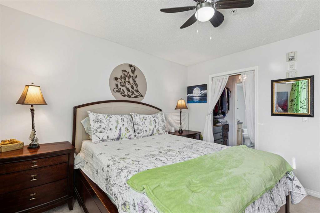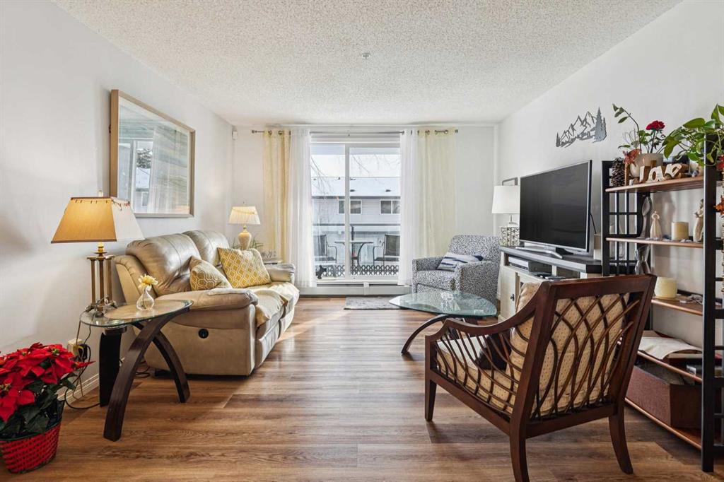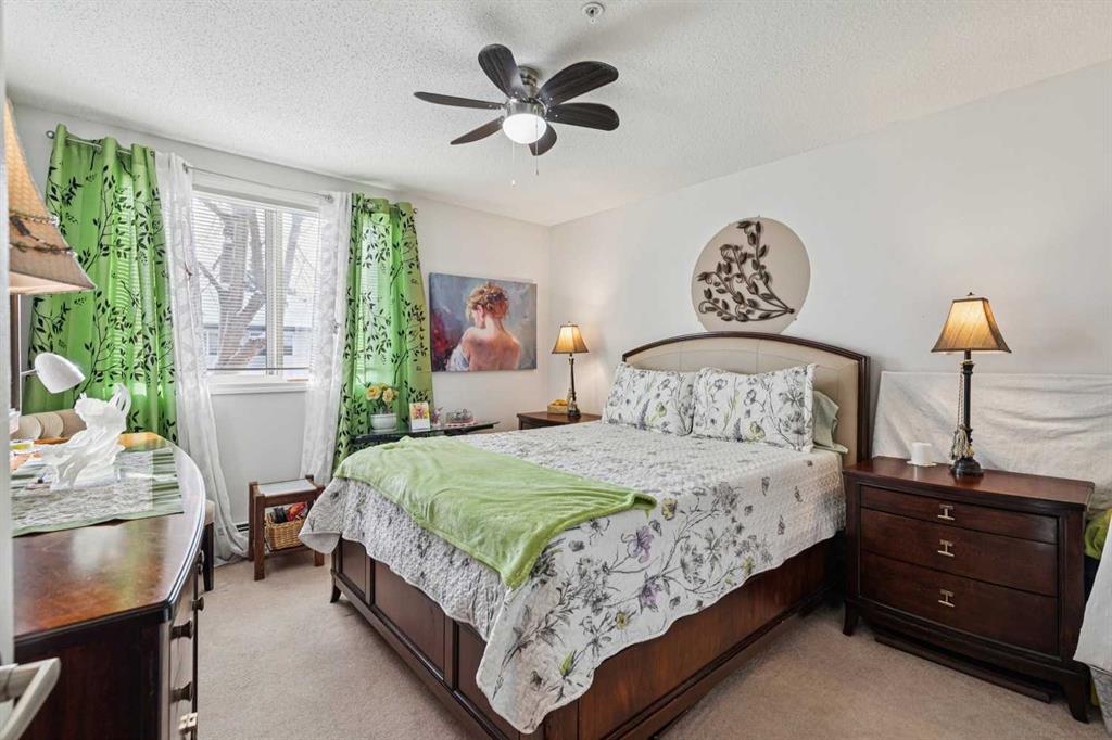 Welcome to Unit 106 in the Valhalla Ridge complex, perfectly situated in the established community of Queensland — just moments from the entrance to Fish Creek Park, where kilometres of walking and biking trails wind along the Bow River. This well-maintained 2 bedroom, 2 bathroom ground floor unit offers a functional layout with nearly 900 sq ft of comfortable living space, along with features that are hard to find at this price point. Positioned at the back of the building, you’ll enjoy a private covered patio with direct access to greenspace through your own personal gate — perfect for pet owners, outdoor enthusiasts, or anyone who values easy access to nature. A gas line for your BBQ makes outdoor living even more convenient. Inside, the bright open-concept layout connects the living and dining areas seamlessly, with a functional galley-style kitchen featuring a pass-through for added light and flow. Recent updates include durable vinyl plank flooring and modern lighting, giving the home a fresh, move-in ready feel. The primary bedroom offers a comfortable retreat with a walk-through closet and private 3-piece ensuite, while the second bedroom and additional 4-piece bathroom are thoughtfully positioned on the opposite side of the unit — ideal for guests, roommates, or a home office setup. Additional highlights include in-suite laundry, ample storage, secured underground parking, and a well-managed building with elevator access. Even better, the condo fees are under $430/month — excellent value for the size, amenities, and maintenance included. Beyond the home itself, Queensland is a hidden gem in Calgary’s southeast, offering quick access to Fish Creek Park, nearby schools, playgrounds, and everyday amenities. With easy connections to Deerfoot and major routes, commuting is simple while still enjoying a quiet, community-focused setting. Whether you’re a first-time buyer, downsizer, or investor, this ground floor unit offers an unbeatable combination of privacy, outdoor access, and location.
